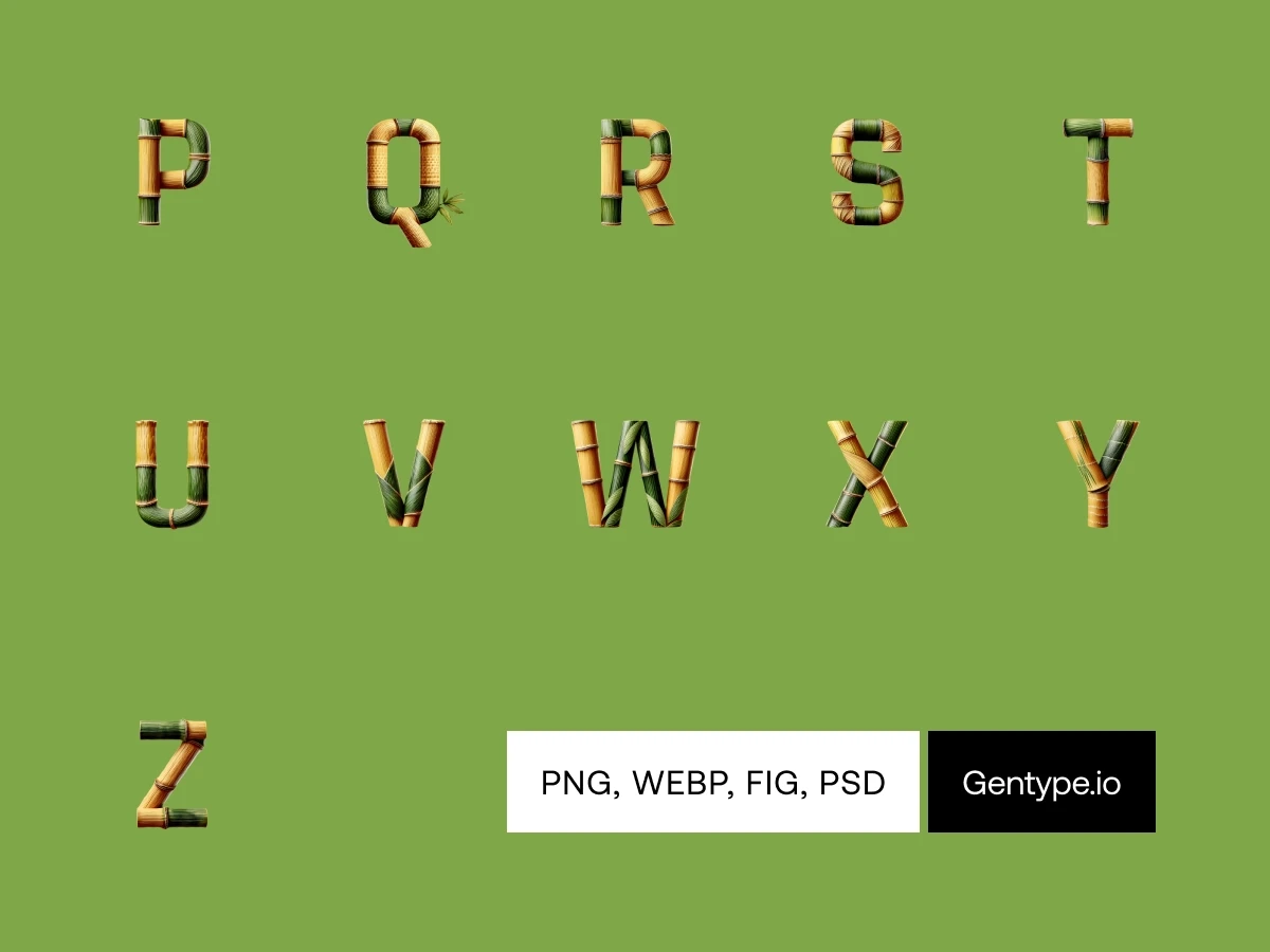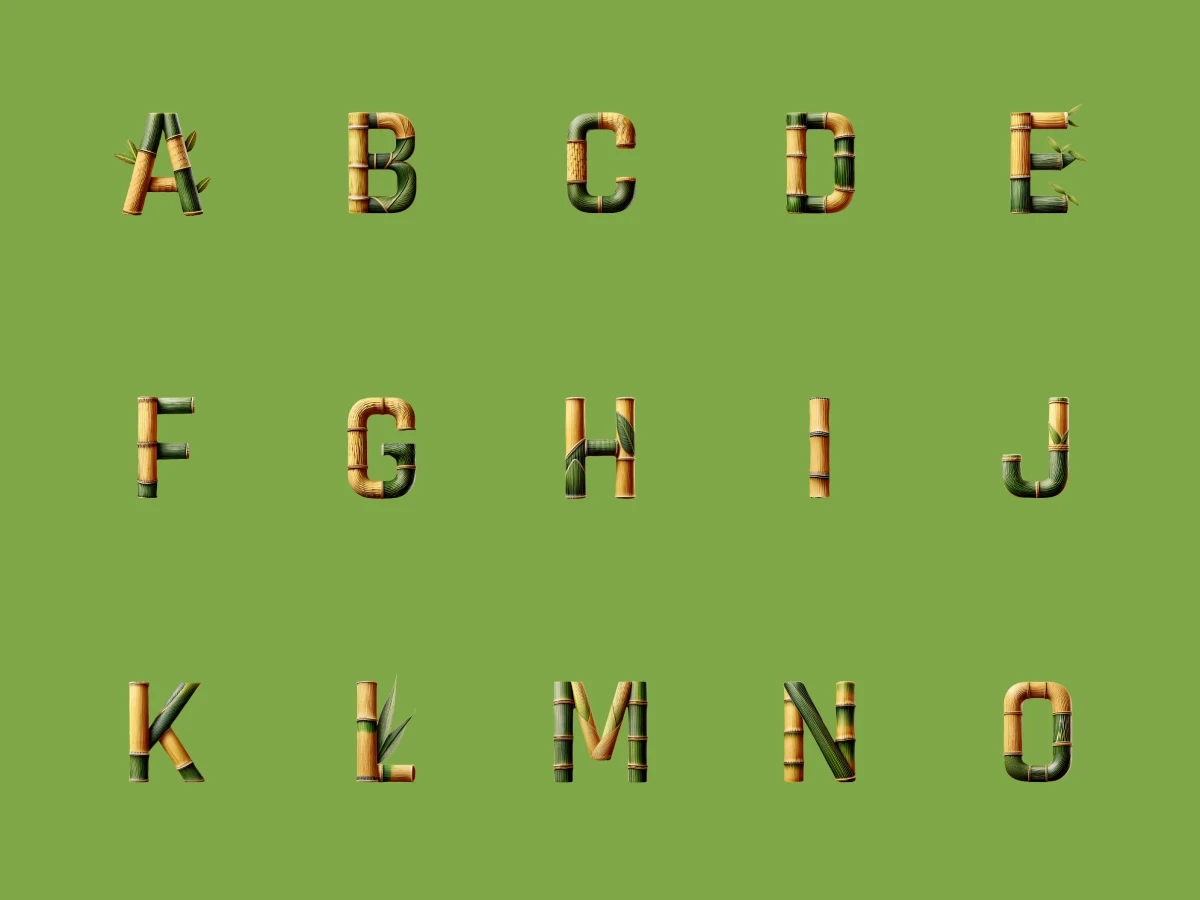 Create a serene sanctuary with lush bamboo textures that bring the calm of nature into your designs. Watch out, these letters can get you staring at the screen for few hours. Be careful!