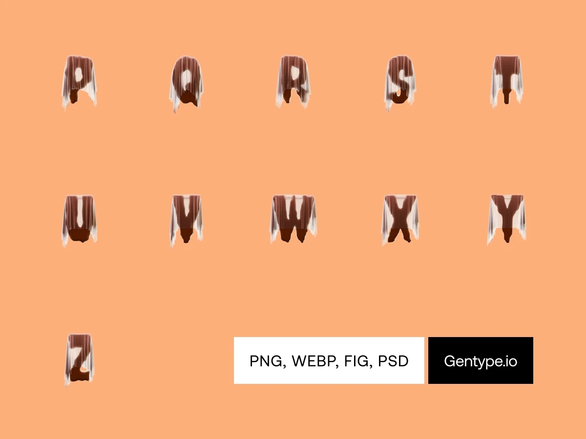 This Halloween, typography takes a spooky twist! Phantom Pumpkin features letters crafted from rich, textured pumpkin skin, shrouded in a ghostly, translucent sheet for that extra eerie vibe. Each letter appears haunted, like it’s floating in from the pumpkin patch, ready to add a playful scare to your designs. Perfect for Halloween-inspired projects or whenever you want to channel a bit of haunted charm.